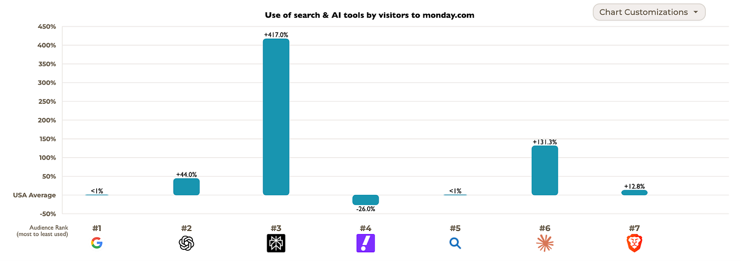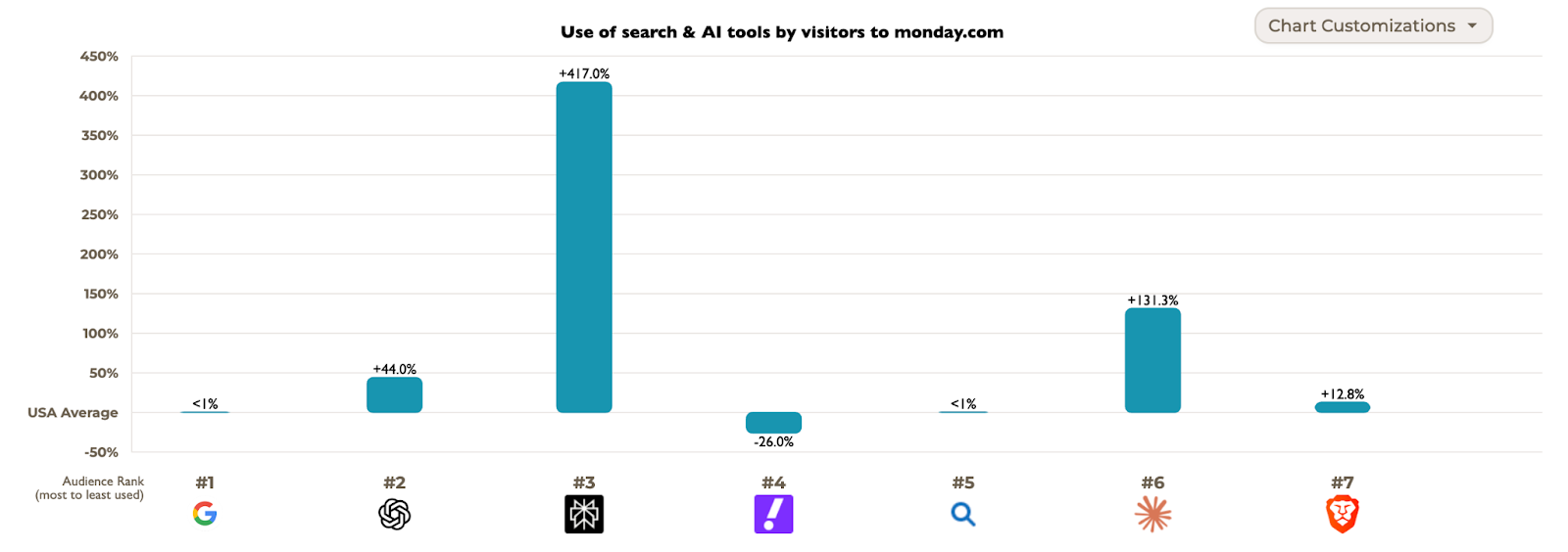 That’s somewhat expected, since people using or searching for a project management solution such as Monday are more likely to be tech-savvy and use AI search engines as part of their online behavior.