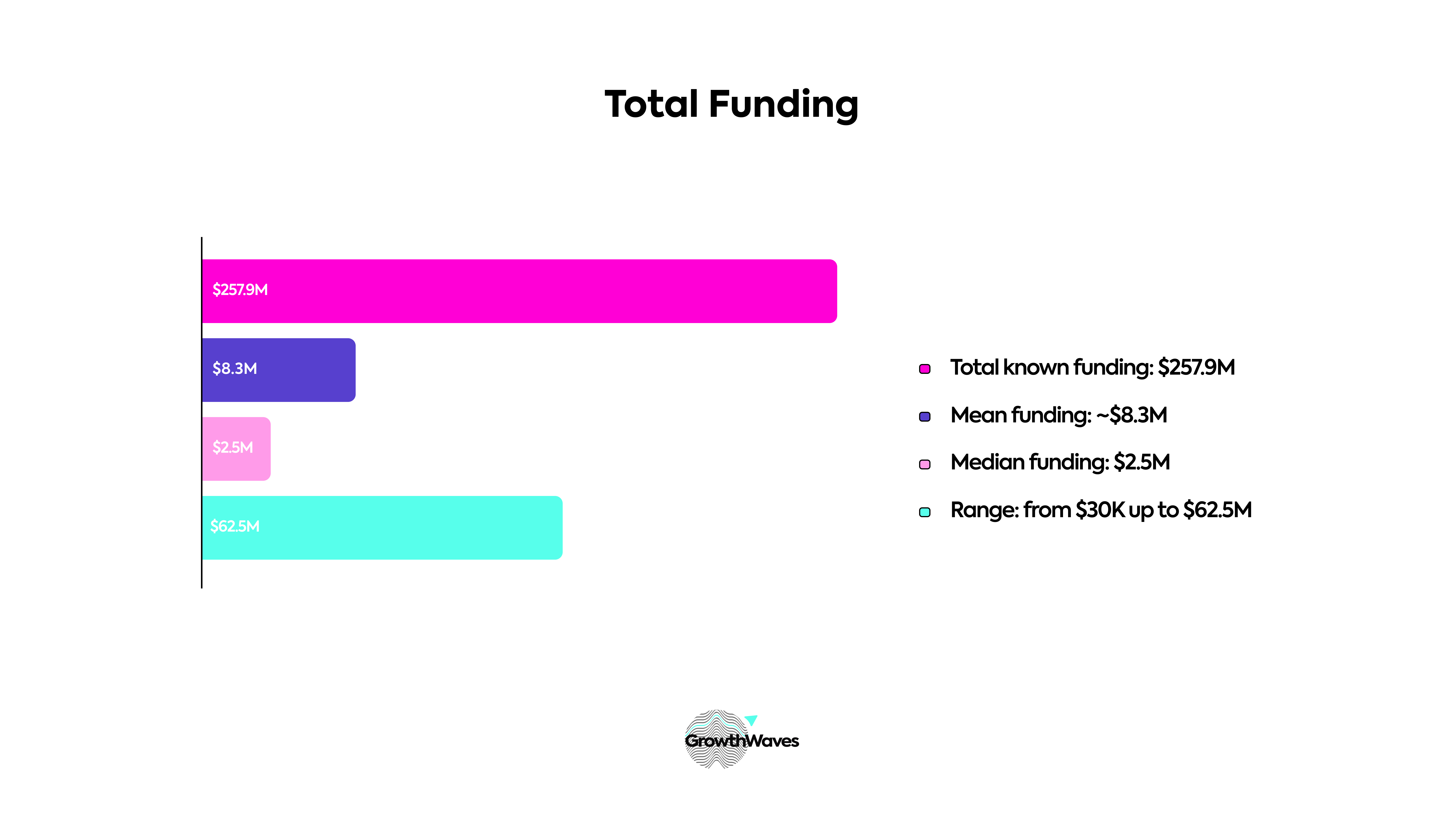 Author’s Note: This was somewhat surprising, as I expected more companies in this category to have raised funding. Importantly, if our researcher’s confidence in a company’s funding status wasn’t rated as “high,” we excluded that data, thereby improving the accuracy of the results.