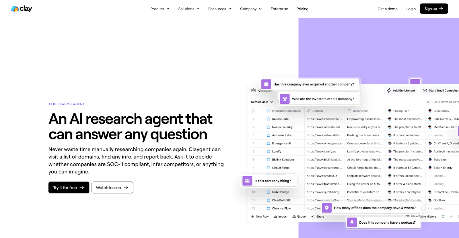 Claygent is Clay’s research agent
