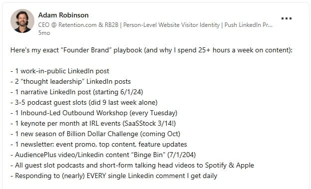 RB2B’s founder, Adam Robinson, leveraged his strong LinkedIn presence to drive RB2B’s growth.