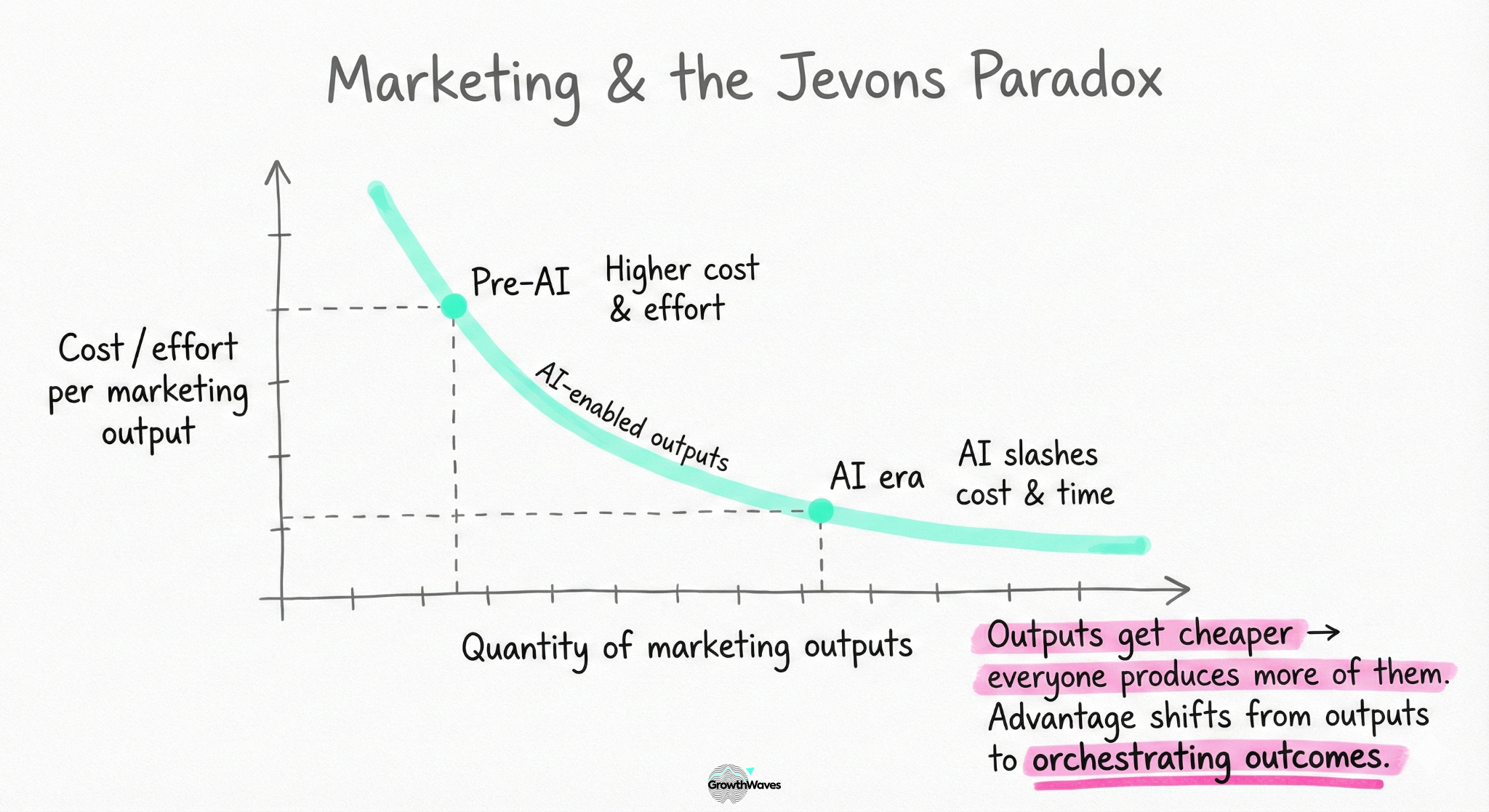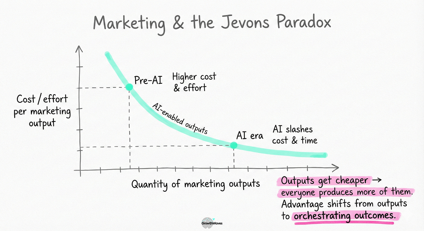 Practically speaking, many core marketing outputs—drawing the parallel with Jevons’s paradox—were hit by a wrecking ball.