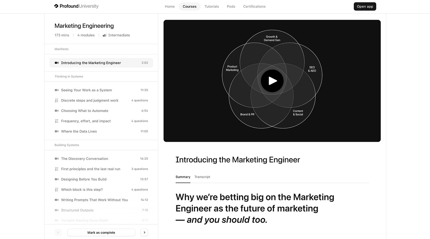 Profound also launched a free course through Profound University to teach people how to become Marketing Engineers.