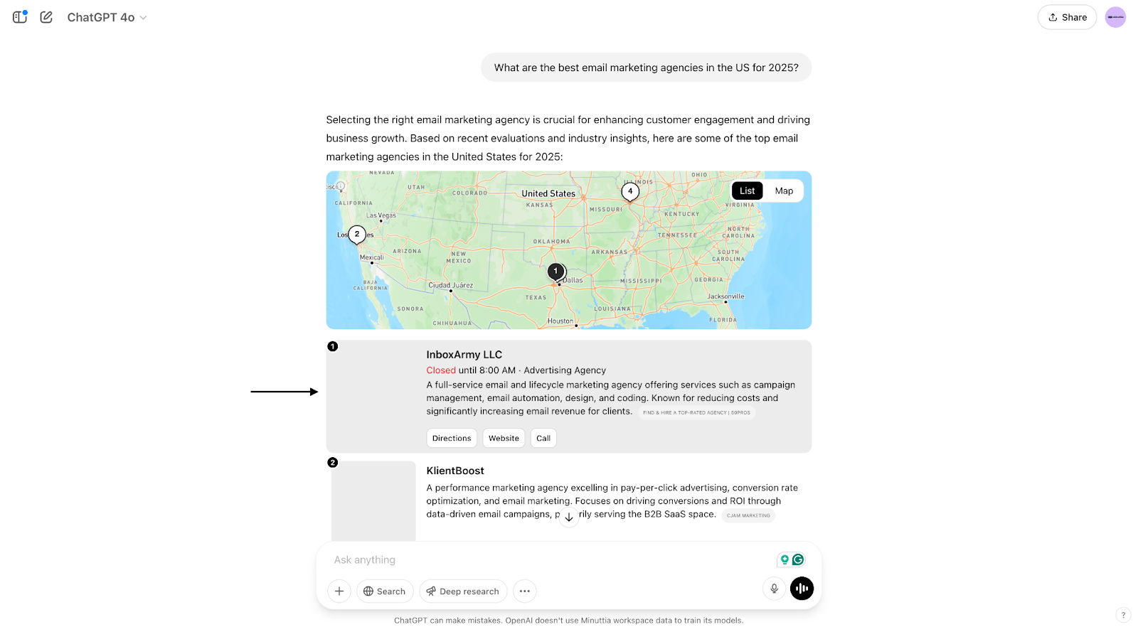 So, in total, we’ve examined three different search engines (Google Search, ChatGPT, and Perplexity), and InboxArmy came either first or second.