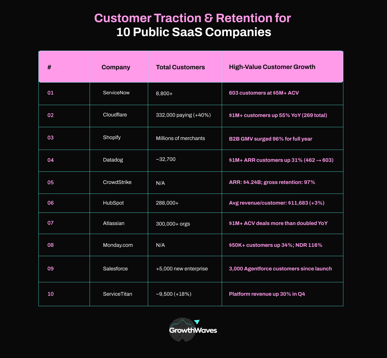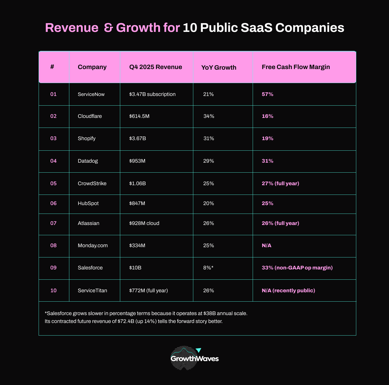 That’s ten public SaaS companies. Let me put the numbers side by side so you can see the full picture.