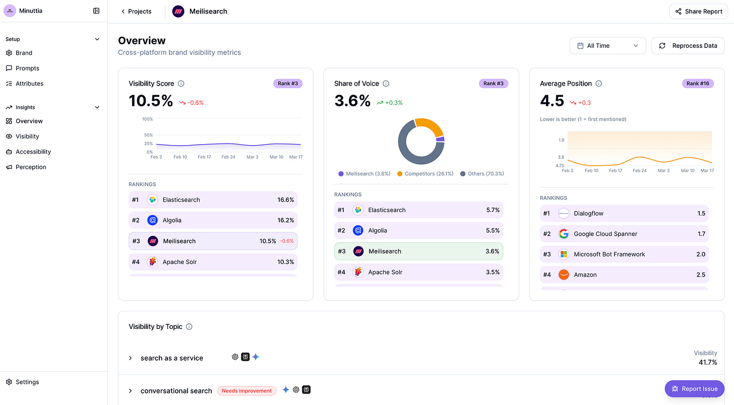 The team at Minuttia built a free AEO report that shows how your brand appears across AI platforms like ChatGPT and Perplexity, based on real prompts, citations, and sentiment data.