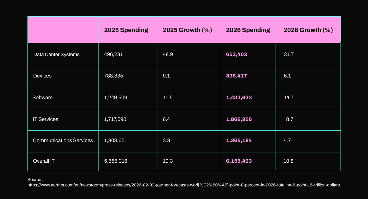 The market spending data confirms this bifurcation. Gartner forecasts worldwide software spending to grow 14.7% in 2026, reaching $1.4 trillion. Software is now the fastest-growing segment of the $6.15 trillion total IT spend. This simply means that enterprises aren’t cutting software budgets. In fact, the opposite is happening.