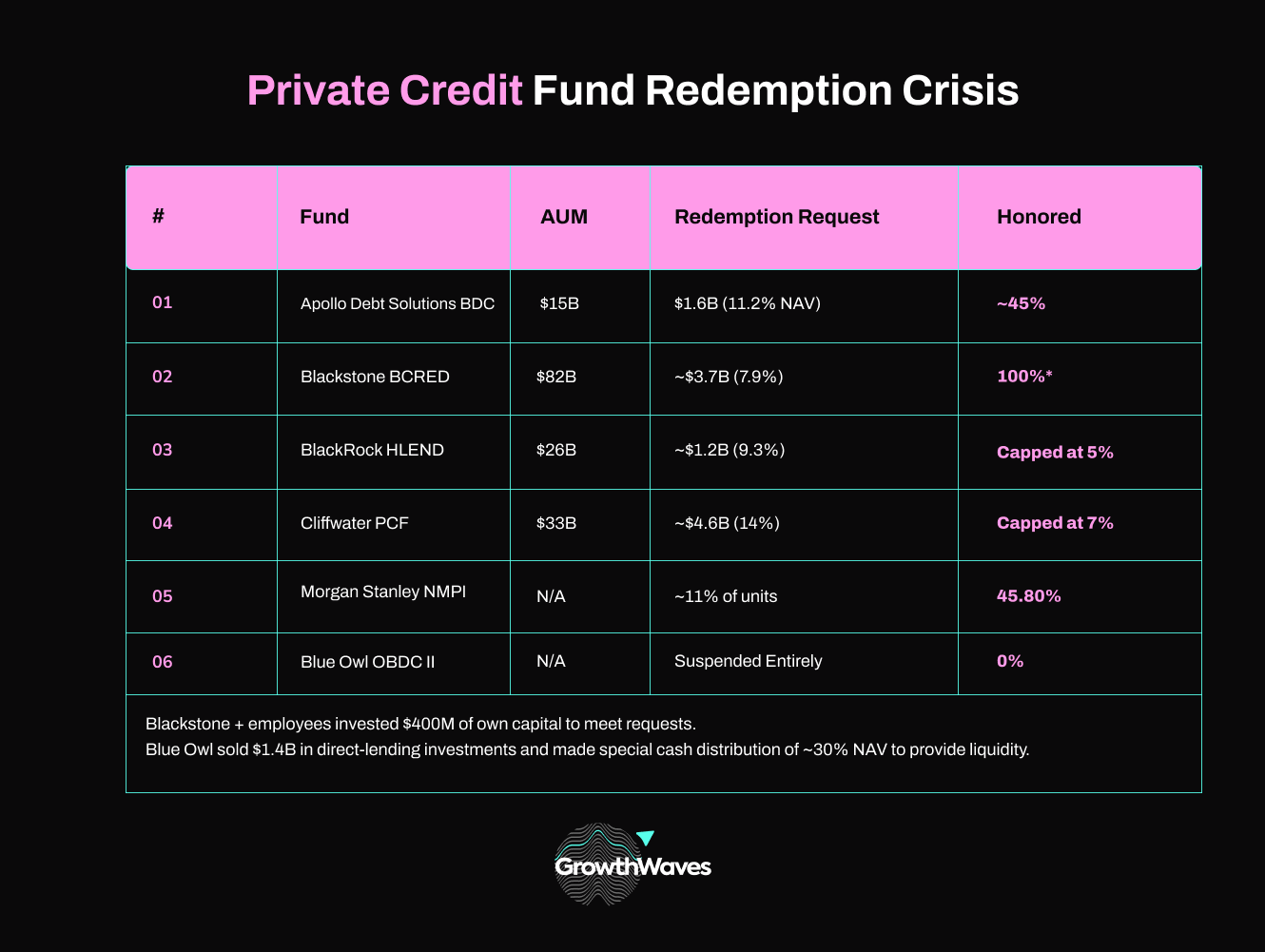And the redemption crisis is already here. Across every major private credit fund, investors are rushing for the exits: