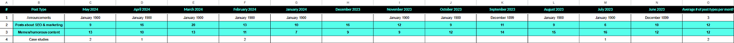 To study the virality patterns, I tracked Semrush’s content back to June 2023.