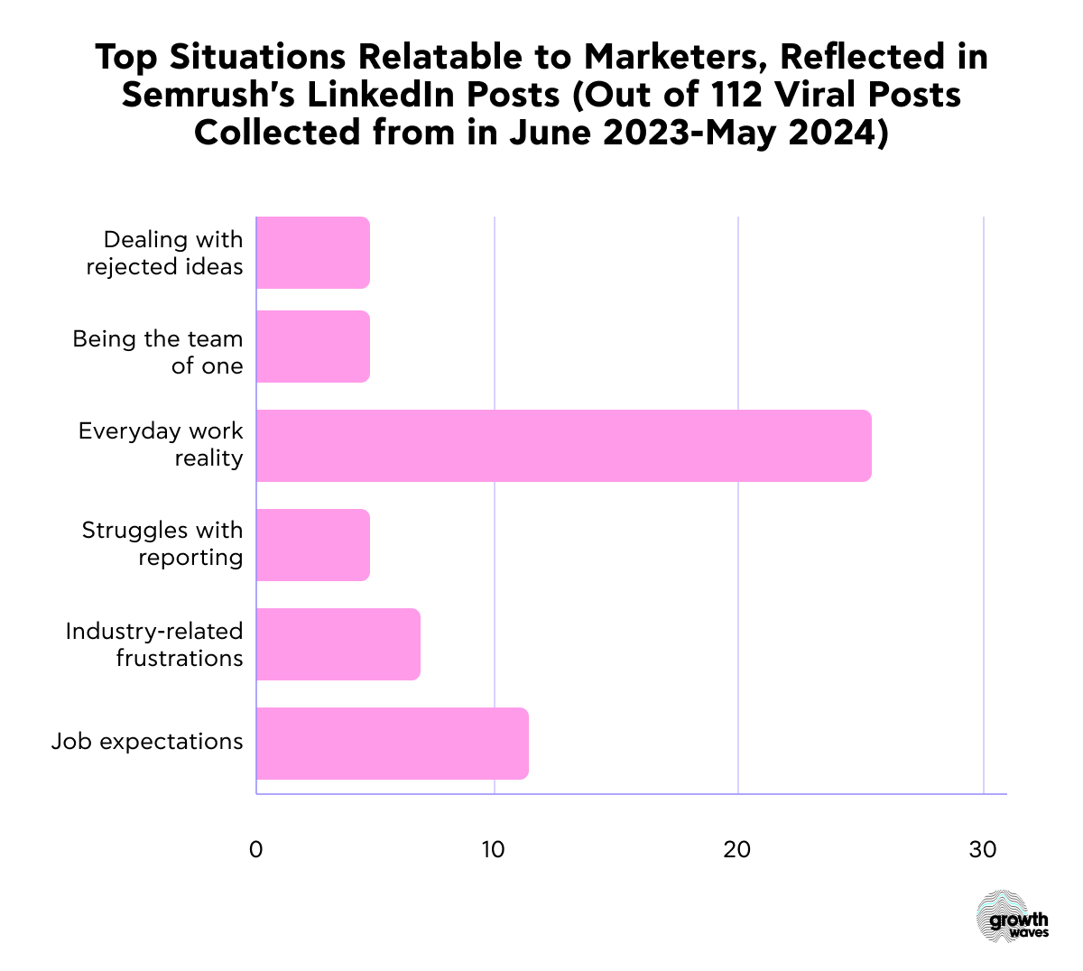In fact, out of 112 high-engagement posts I collected from June 2023 to May 2024, 52% addressed at least one pain point common to marketers.