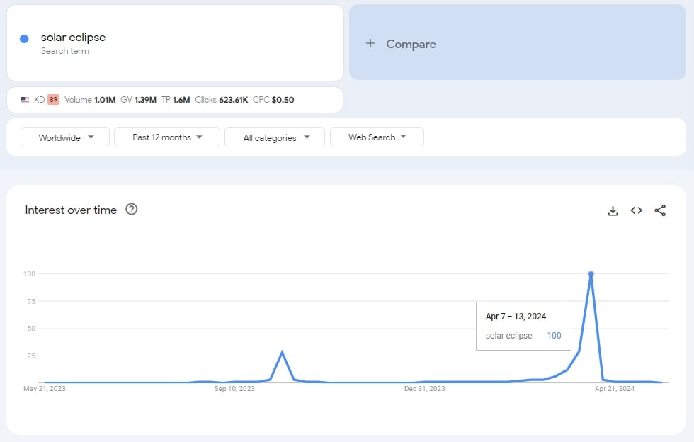 In this case, the search was exploding with all sorts of information on the event of the eclipse between the seventh and thirteenth of April.