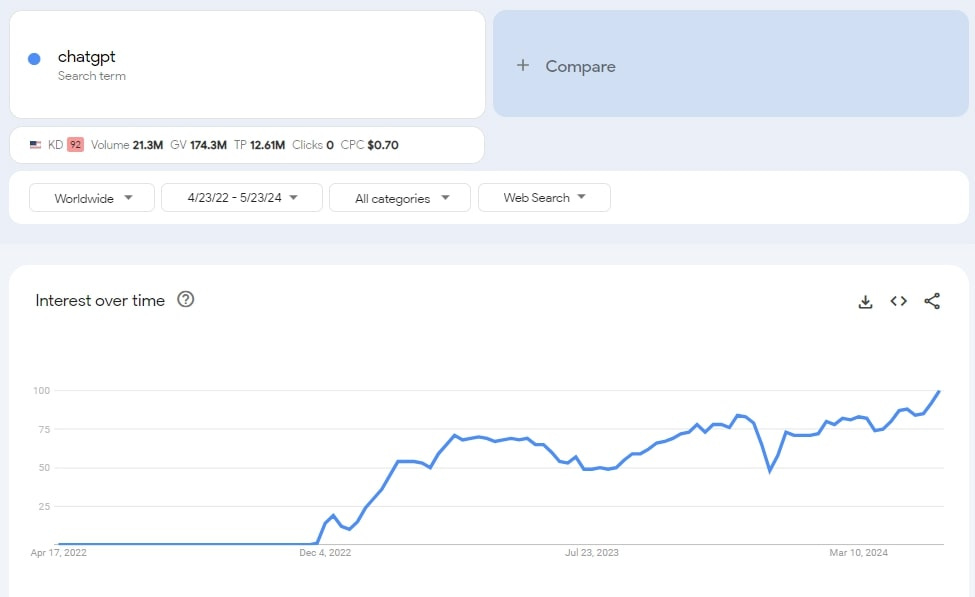 Such high engagement was possible because ChatGPT has remained a highly trending topic for almost two years.