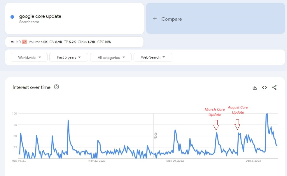 Editor’s Note: After the March 2023 Core Update, Google announced the next one for August 2023, which impacted the data in Google trends.
