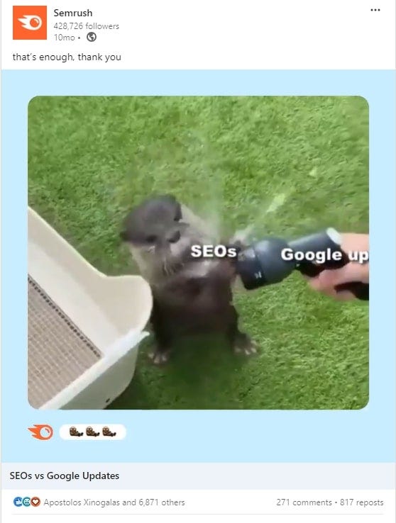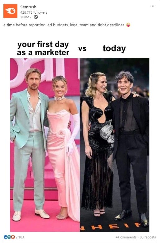 Semrush’s audience seems to prefer industry-related jokes and memes.